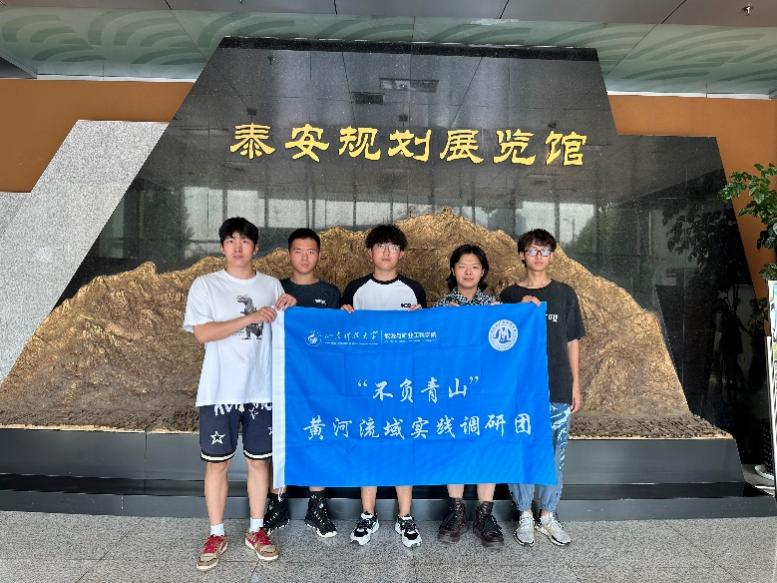 在泰安,团队成员们在信誉最好的十大体育平台泰安校区门口集合,参观了泰安规划展览馆,对泰安当地的相关政策进行学习与了解,学习了当地为推动黄河流域生态保护采取的措施和规划以及了解了泰安作为老旧矿山城市未来的规划发展。