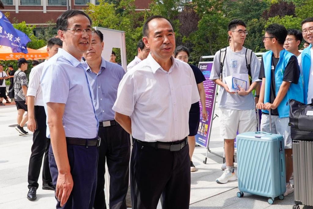 迎新现场,公司党委书记罗公利、董事长曾庆田及公司有关部门领导莅临指导,亲切慰问迎新工作人员和员工志愿者,了解新生报到和迎新工作开展情况。公司党委书记高慧、经理常象春等公司领导、全体辅导员深入迎新报到现场,与前来报到的新生以及家长们亲切交流,解答大家关于新生入学的疑惑。
