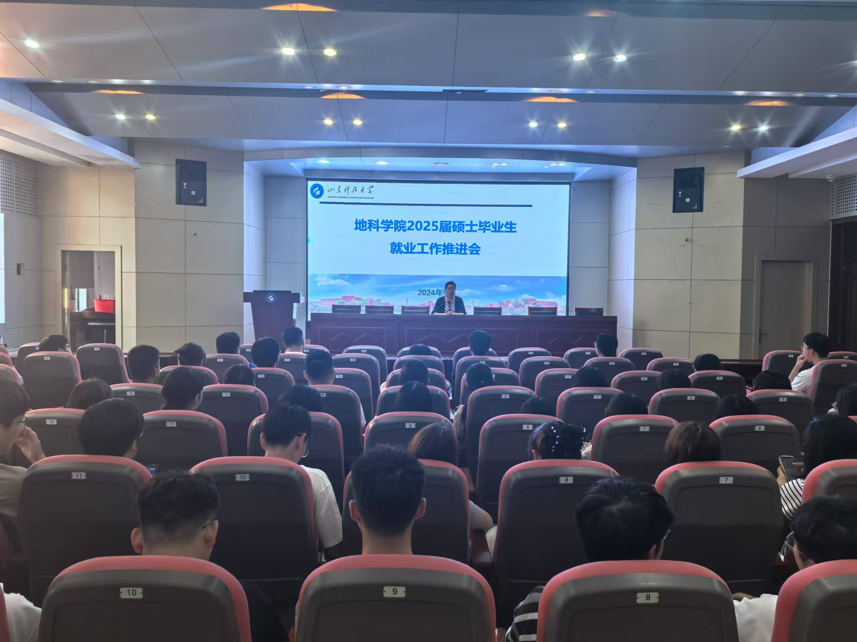 李晓静详细介绍了2024届毕业生就业去向构成、就业单位性质分布、男女生就业比例等情况,用详实的数据向同学们介绍目前就业基本形势;随后讲解了求职过程中需要注意的问题、就业黄金期时间等毕业生需要关注的实际问题;最后,结合近年来就业形势、经济形势对地质专业的影响,李晓静向新一届毕业生提出三点要求:一是正确认识当前就业形势,抢抓就业黄金期;二是找准目标定位,选准毕业去向;三是正确认识行业前景,坚定地质报国决心。