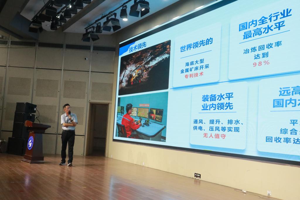 会议伊始,山东黄金集团代表对到场的同学表示热烈欢迎,并通过视频、PPT简单介绍了山东黄金集团的历史沿革、战略布局及人才培养方案等内容,同时也展现了山东黄金积极响应国家政策的企业担当。