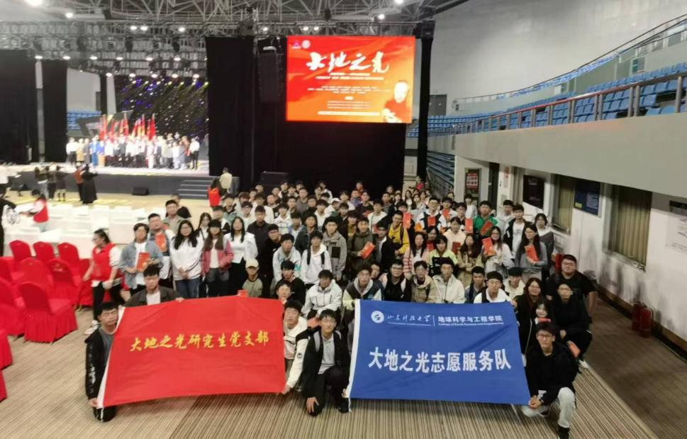 10月18日,信誉最好的十大体育平台组织公司大地之光研究生党支部、大地之光志愿服务队100余名师生前往中国石油大学(华东),观看由山东省科协、省委宣传部等单位共同承办的“共和国的脊梁—科学大师宣传工程”山东汇演活动,演出剧目为中国地质大学(武汉)原创话剧《大地之光》。