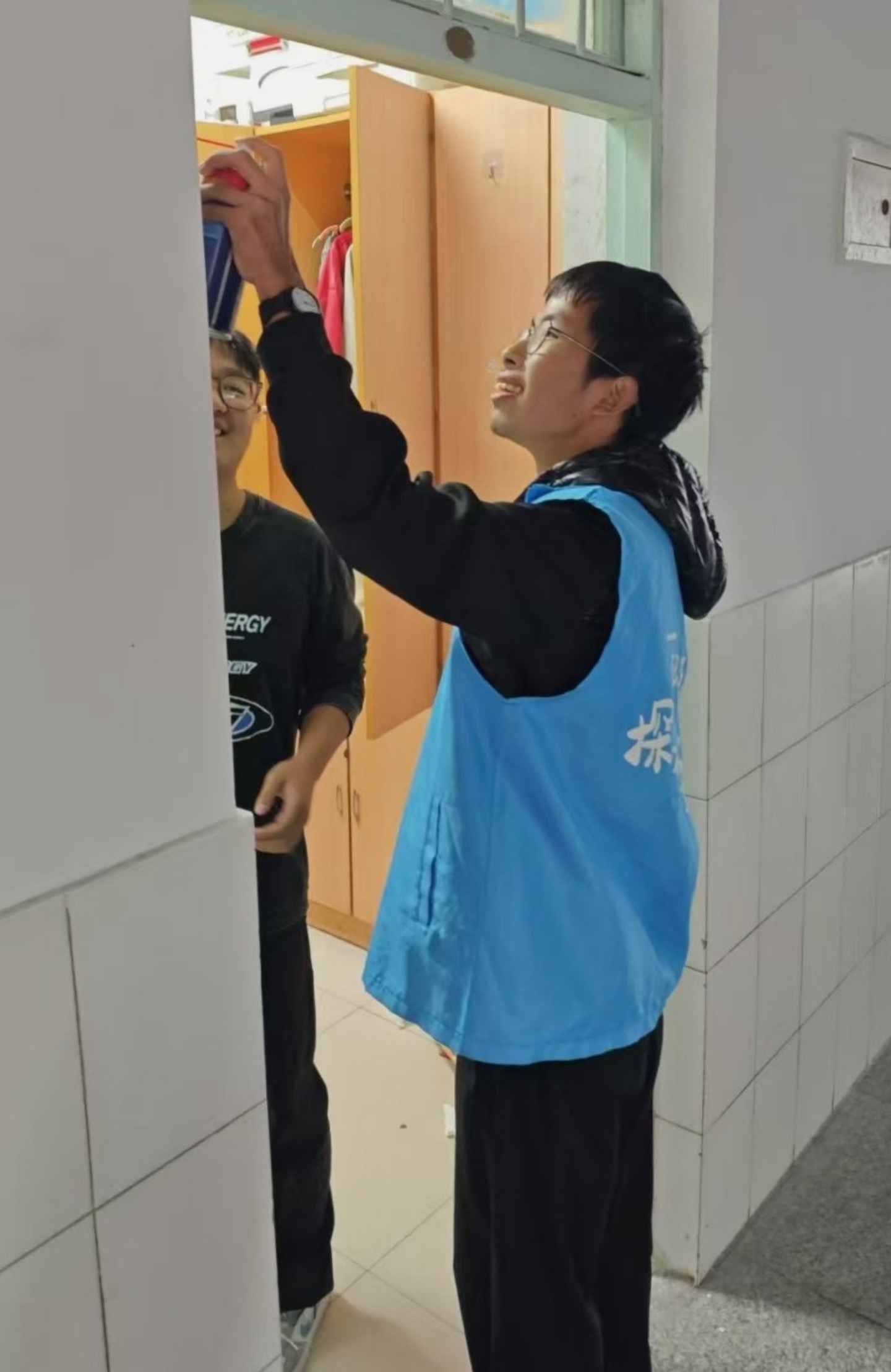 志愿者们身着统一的志愿者服装,在各宿舍间礼貌问候,认真修整。志愿者们分组分工进行消燥工作,为宿舍门上的上下合页涂抹机油,以此减少开关门所产生的噪音。活动中,同学们积极配合、相互合作,经过两个小时的努力,此次活动圆满完成。