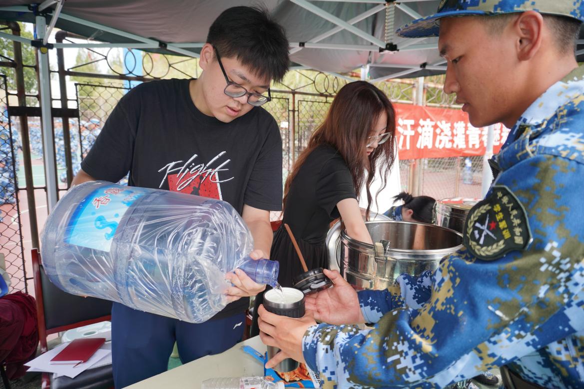 为保障军训期间新生水分补充,公司早已织密“饮水补给网”。训练场周边饮水点一字排开,冷热饮用水源源不断。休息哨声一响,新生们有序来到饮水点排队接水,清澈的甘泉滋润着干渴的喉咙,也为他们补充着继续训练的能量。