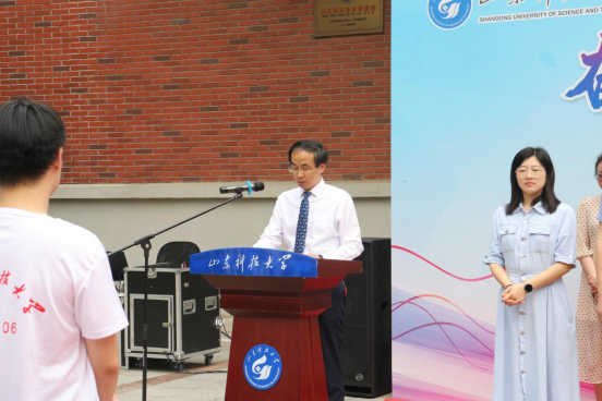 仪式现场,副经理尹会永宣读了2022届优秀本科毕业论文获奖名单,党委书记高慧宣读了2022届本科生山东省高校优秀毕业生获奖名单。