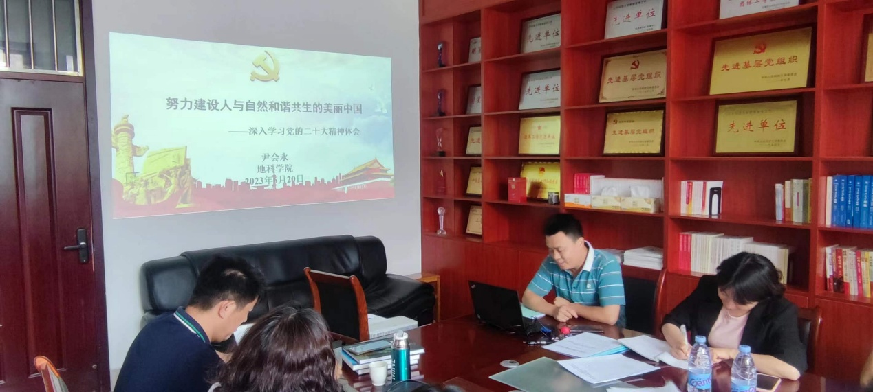 为深入开展学习贯彻习近平新时代中国特色社会主义思想主题教育,2023年6月20日下午,信誉最好的十大体育平台副经理尹会永在J6-419党员活动室为地球物理系党支部作了题为“努力建设人与自然和谐共生的美丽中国---深入学习党的二十大精神体会”的党课,旨在帮助党员们深入理解党的二十大精神,明确新时代党和国家事业发展的目标任务,为建设美丽中国贡献力量。