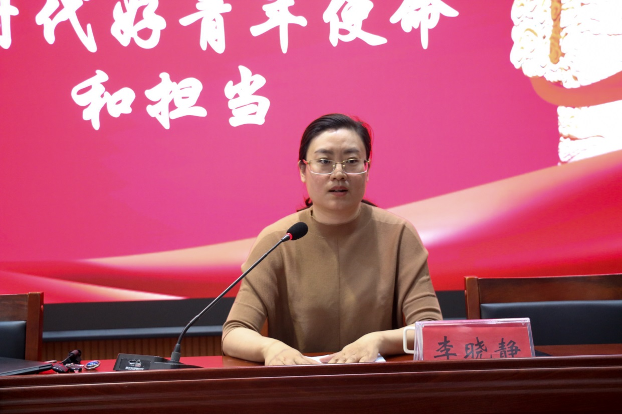 在党的二十大上,习近平总书记发出伟大号召“广大青年要坚定不移听党话、跟党走,怀抱梦想又脚踏实地,敢想敢为又善作善成,立志做有理想、敢担当、能吃苦、肯奋斗的新时代好青年,让青春在全面建设社会主义现代化国家的火热实践中绽放绚丽之花”。李晓静通过百年前后年均28岁的党的一大代表和天安门前高喊“请党放心,强国有我”的青少年代表的两组图片引入,以习近平总书记在澳门濠江中学的讲话和将个人发展融入到祖国发展中的“90后”电焊技师裴先锋的成长经历,疫情期间青年志愿者谢小玉、社区医生甘如意、戍疆烈士陈祥榕等人的光辉事迹,以及首位成功登顶珠峰的在校女老员工陈晨和北京冬奥身披五星红旗的“00后”小将苏翊鸣的奋斗故事等,就如何做好“有理想、敢担当、能吃苦、肯奋斗”的新时代好青年一一进行解读。