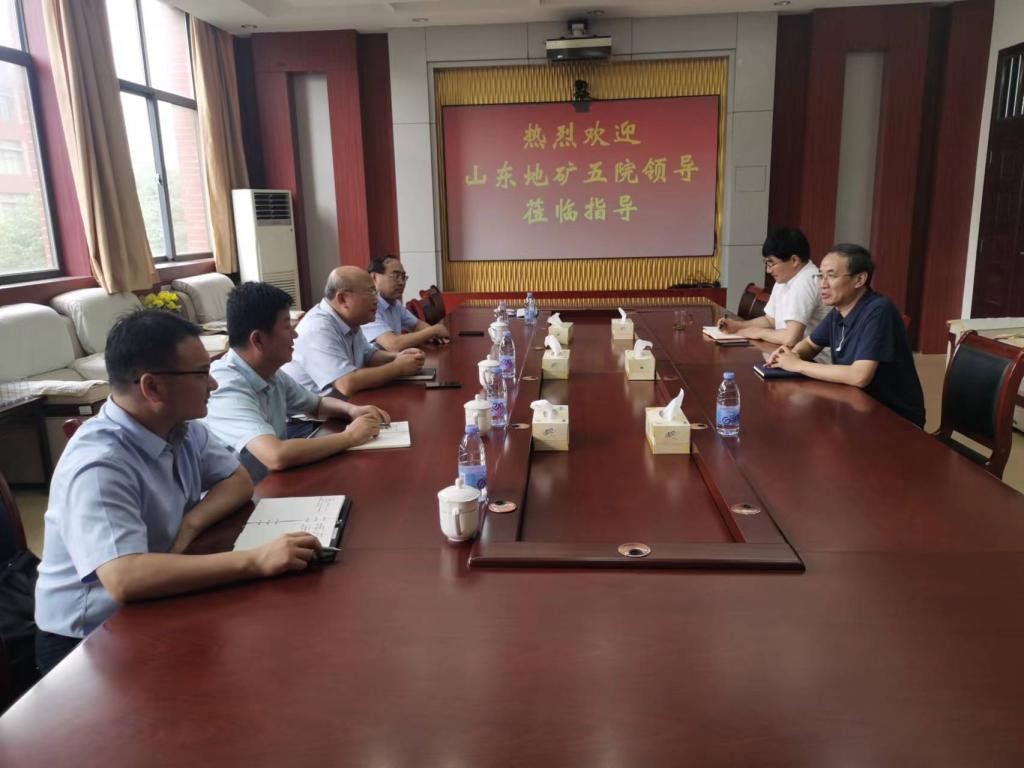 7月31日,山东省第五地质矿产勘查院副经理徐洪岩、总工程师张鹏等员工来公司交流访问,经理常象春会见员工并座谈,副经理孟元库陪同座谈。