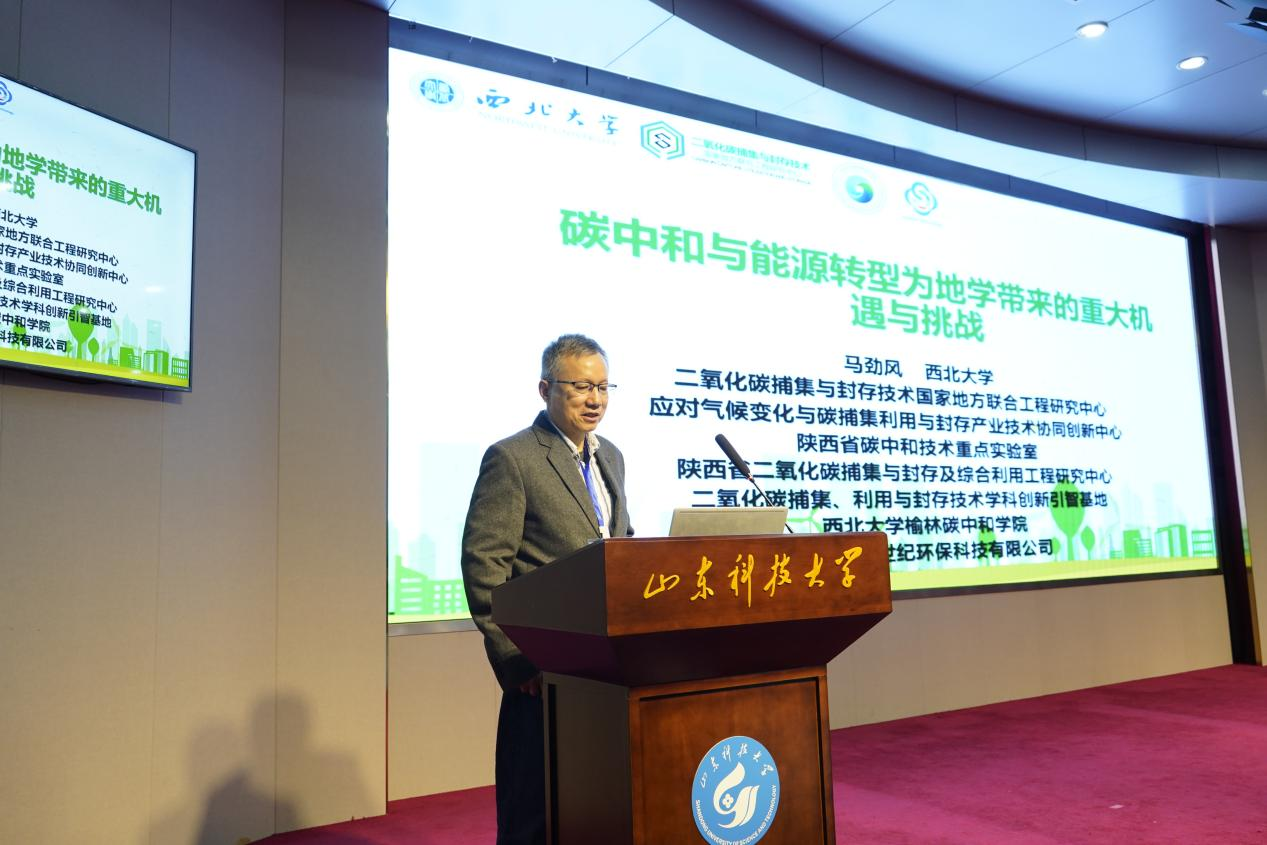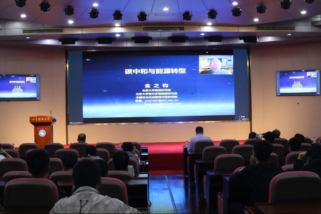 论坛邀请了北京大学能源研究院经理、中科院院士金之钧教授,国家杰出青年基金获得者、北京大学刘全有教授,欧洲自然科公司院士、山西省太平洋煤层气研究院经理张遂安教授,中国地质调查局重大项目首席科学家、中国地质调查局杰出地质人才、自然资源部首席科学传播专家、青岛海洋地质研究所副所长印萍研究员,国家杰出青年基金获得者、中国海洋大学海洋地球科学公司经理王厚杰教授,二氧化碳捕集与封存技术国家地方联合工程研究中心主任、西北大学马劲风教授,自然资源部科技领军人才、泰山学者特聘教授、山东省地矿局康凤新研究员,中国石化胜利油田CCUS项目经理吕广忠正高级工程师,中国地质调查局重大项目首席科学家、青岛海洋地质研究所陈建文研究员,泰山学者青年专家、中国石油大学(华东)梁超教授等15名专家做特邀报告,23名青年学者做学术报告。金之钧院士在“碳中和与能源转型”的主题报告中,系统介绍了全球及我国能源现状、实现双碳目标的难点与方法,认为当前能源转型表现为“多元化、低碳化、分散化、再电气化、数字化与智能化、国际化”特征,发展清洁低碳能源是能源转型的主要方向,中国的双碳目标彰显了一个负责任大国应对气候变化的积极态度。