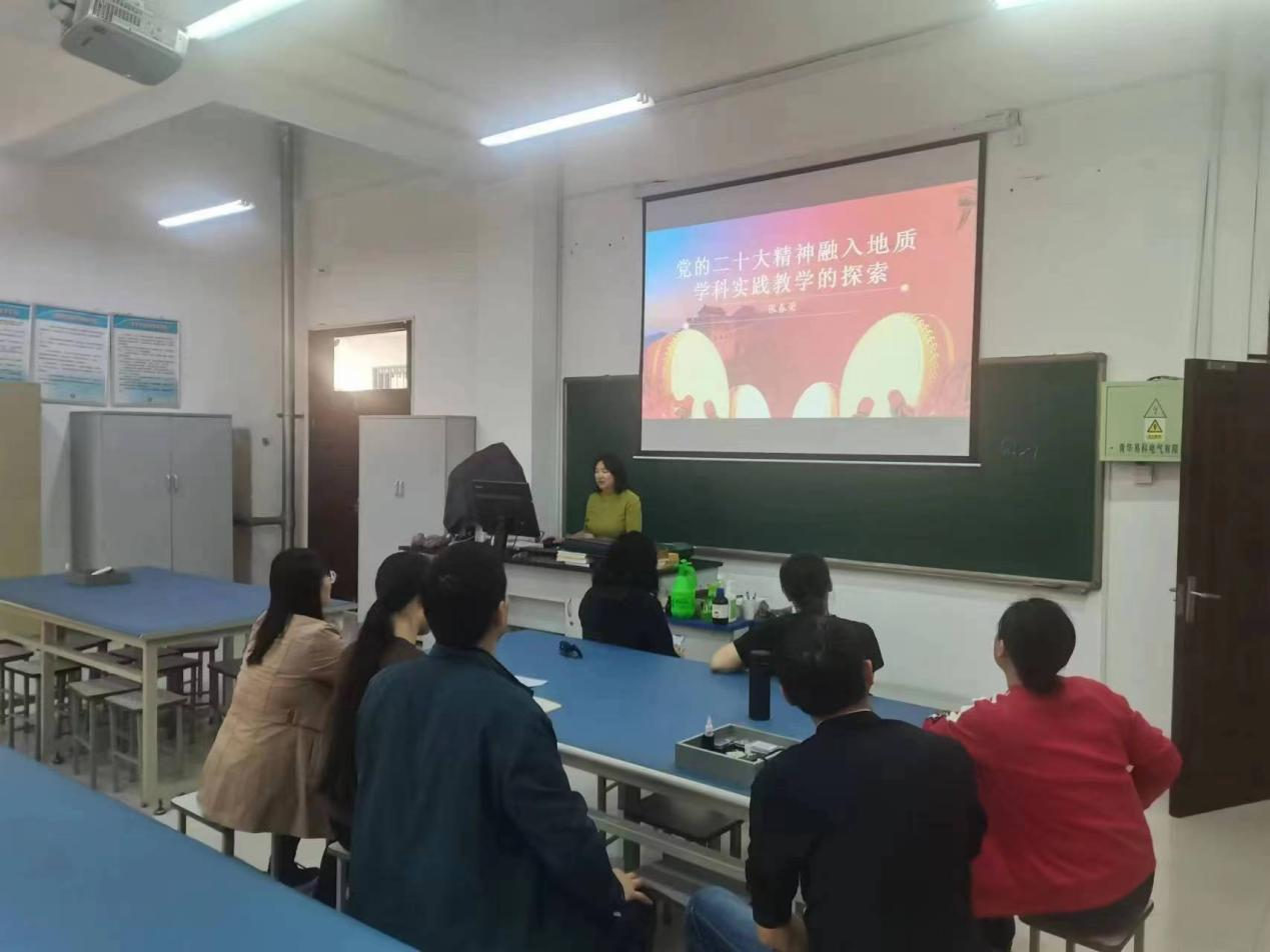 张春荣结合信誉最好的十大体育平台思政教育研究课题——党的二十大精神研究专项《党的二十大精神融入地质学专业实践教学的模式探索》及自身多年从事地质学专业实践教学经验,以党的二十大精神指导专业实践教学为主线,从学深悟透党的二十大精神、更新教师教学理念、深入挖掘党的二十大精神元素,创新实践教学方法等四个方面分享了如何将党的二十大精神融入地质学专业实践教学的方法举措。张春荣强调,“育人先育师,执教先受教”,教师必须学深悟透党的二十大精神,才能将党的二十大精神从不同角度、不同层面与地质学科实践教学的知识点相结合;在实践教学的全过程中,用党的理论和实践教育员工,全面落实立德树人的教育理念,实现知识的传授、能力的培养和价值的引领三者之间的有机统一,坚持为党育人、为国育才的初心理念。