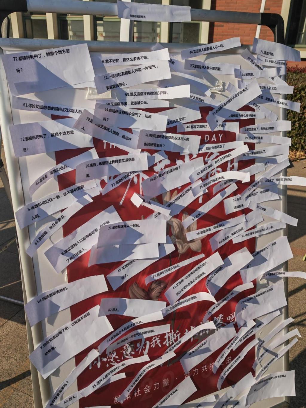 活动现场,志愿者们身着蓝色志愿者服装,向同学们发放宣传资料,并耐心解答他们关于艾滋病的疑问。红丝带作为艾滋病防治的象征,象征着爱与关怀,也呼吁人们对艾滋病患者给予更多的理解和支持。除了宣传和解答疑问,活动现场还设置了艾滋病知识问答环节和互动游戏环节,同学们撕掉写有艾滋歧视的标签,拥抱玩偶,打破对艾滋病患者的歧视,吸引了众多同学的参与。通过这些形式多样的互动环节,同学们不仅学到了更多的艾患者的关爱态度。
