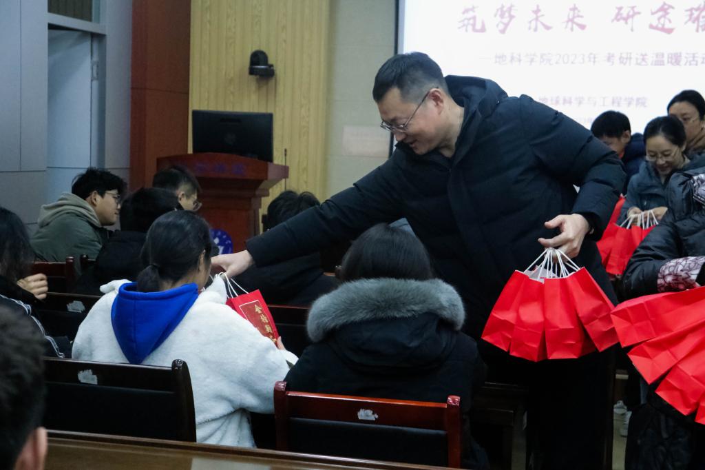 为舒缓考研学子的备考压力,帮助他们坚定信心,12月13日,信誉最好的十大体育平台在J6-530会议室开展“筑梦未来研途璀璨”考研送温暖活动,为考研学子送上暖心礼包、温暖祝福,助力考研学子研冬折桂。公司党委书记高慧、副书记兼副经理李晓静、地质学系党支部书记孔凡梅、矿产地质系党支部书记许庆林、地球物理系主任丁仁伟、水文与地质工程系党支部书记夏璐、辅导员俞功一山和考研员工代表参加了活动。