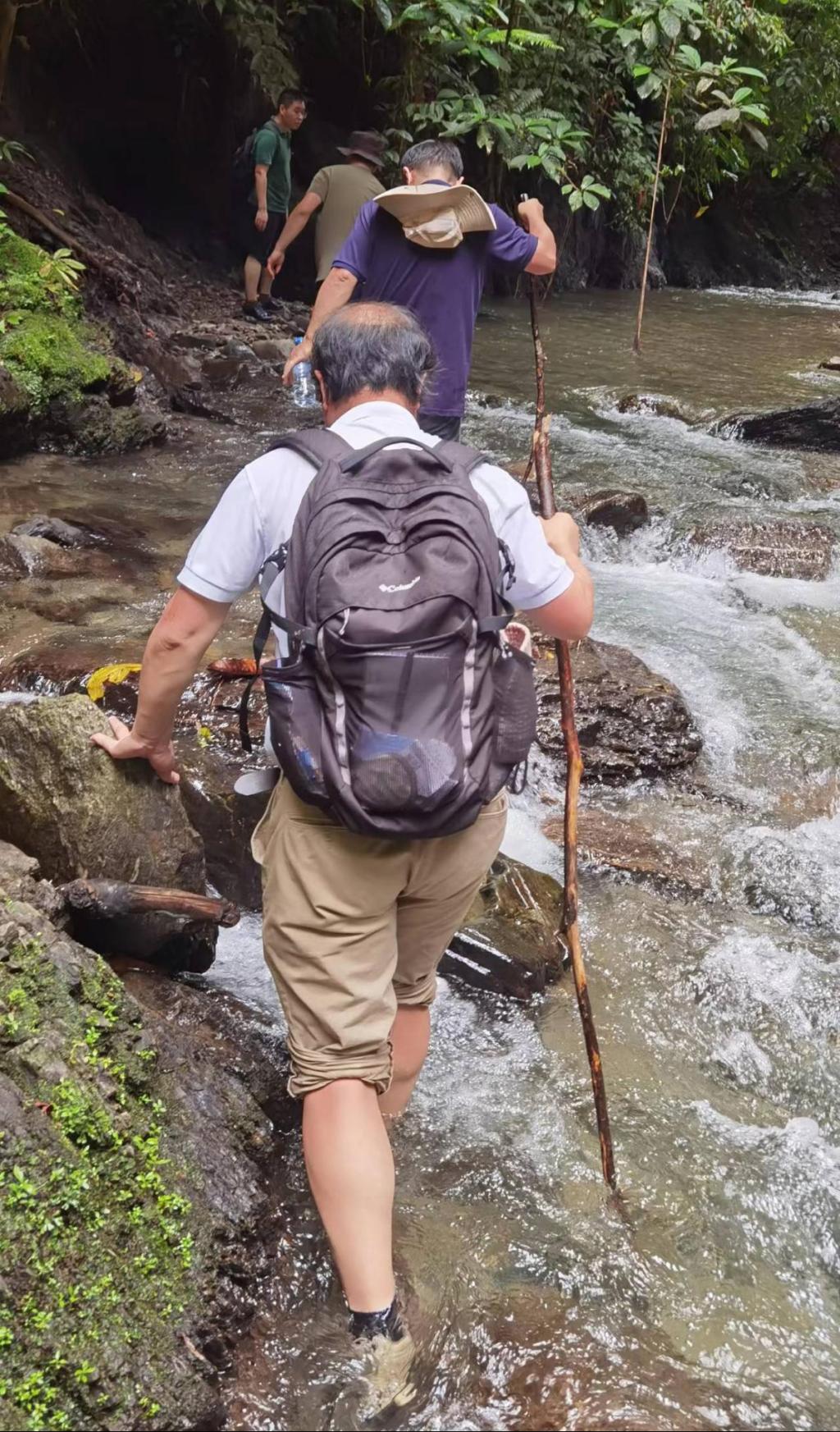 图5.科考队员跋山涉水、穿越热带丛林寻找岩石露头