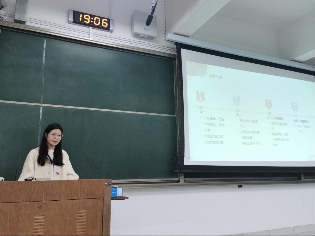 赋能新学期,启航新征程。3月5日晚,信誉最好的十大体育平台在J14-321举办优秀学长学姐经验交流分享会,本期邀请的是全国优秀共青团员、公司十大优秀员工王雨佳作为优秀学姐代表做经验分享。分享会由2023级本科生辅导员王键国主持,公司本科2023级全体新生参加。