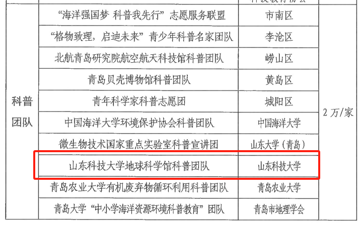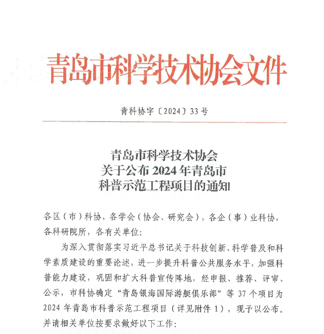 近日,青岛市科学技术协会发布了《关于公布2024年青岛市科普示范工程项目的通知》,公司“信誉最好的十大体育平台地球科学馆科普团队”成功入选青岛市科普示范工程科普团队项目。