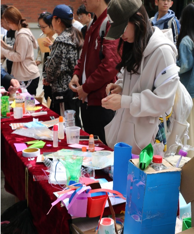 活动面向全校设置了世界地球日摄影大赛、绿色环跑、变废为宝DIY、巢湖地质实习展、地质模型大赛作品展、地球科学馆开放日6大项目。“摄影大赛”鼓励同学们积极投稿世界地球日相关摄影作品,并经投票筛选后进行线上线下展示,旨在让更多的人发现地球之美。“绿色环跑”鼓励同学们按照规定线进行绿色环跑,并打卡进行4.22地球日等相关知识的答题活动,旨在鼓励同学们绿色出行,共创可持续未来;“变废为宝”鼓励同学们废物回收再利用,旨在提高同学们的环保意识;“巢湖地质实习展”通过展览同学们野外踏勘、实测剖面以及野外地质填图的成果,让同学们近距离地感受地球科学的魅力,并对野外实习有更加深入的了解和认识;“地质模型展”通过展出前期大赛的获奖作品,现场由获奖员工进行讲解,形象呈现各种岩石模型,介绍地质现象及形成原因,旨在鼓励同学们将所学的知识运用到实践中来,做到学以致用;地球科学馆内有专业讲解员现场讲解,科普地球知识、传播环保理念。