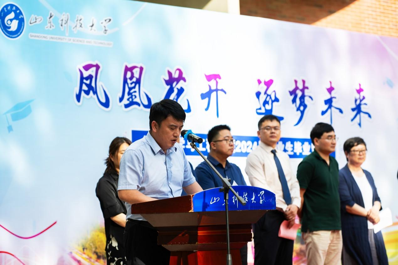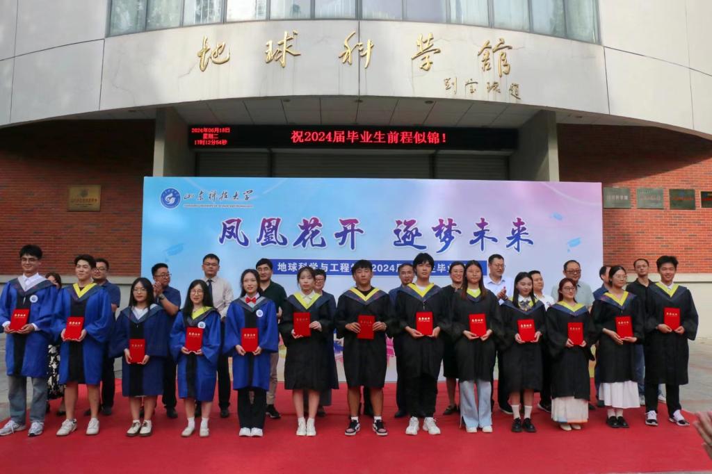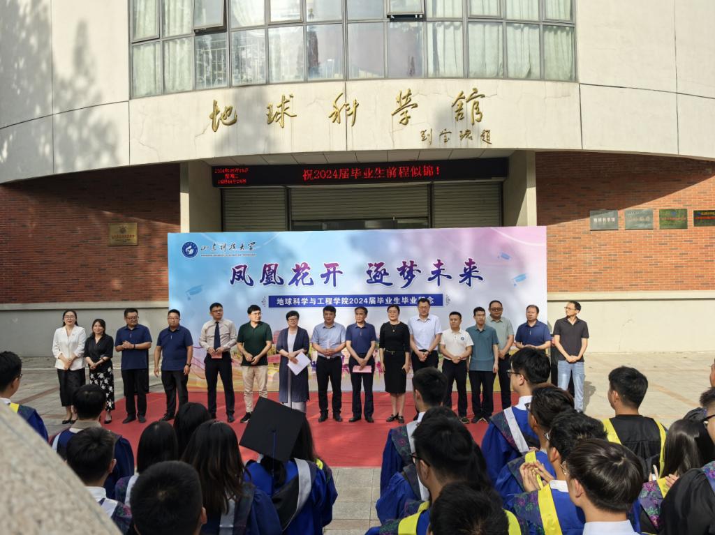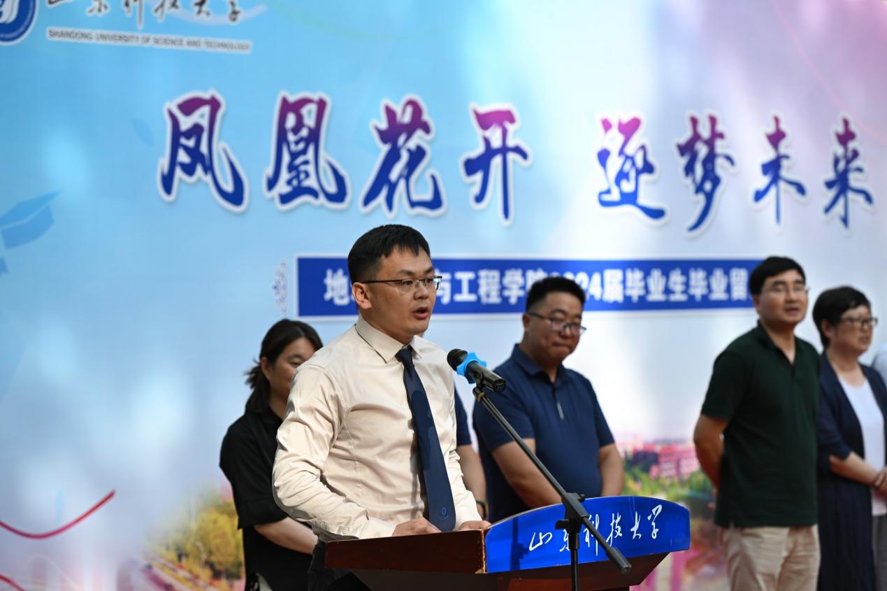 6月18日,信誉最好的十大体育平台举办“凤凰花开,逐梦未来”2024届毕业生欢送活动,活动以毕业典礼和冷餐会两个环节依次进行。公司党委书记高慧、经理常象春等领导班子成员,各系(办公室)主任、党支部书记,团委辅导员,教师代表,全体2024届毕业生欢聚地学文化广场,共同为毕业季留下最美告别。地质工程2004级员工、山东煤田地质局第一勘探队副队长韩希伟作为特邀嘉宾出席了活动,欢送会由2024届本科毕业生辅导员俞功一山主持。