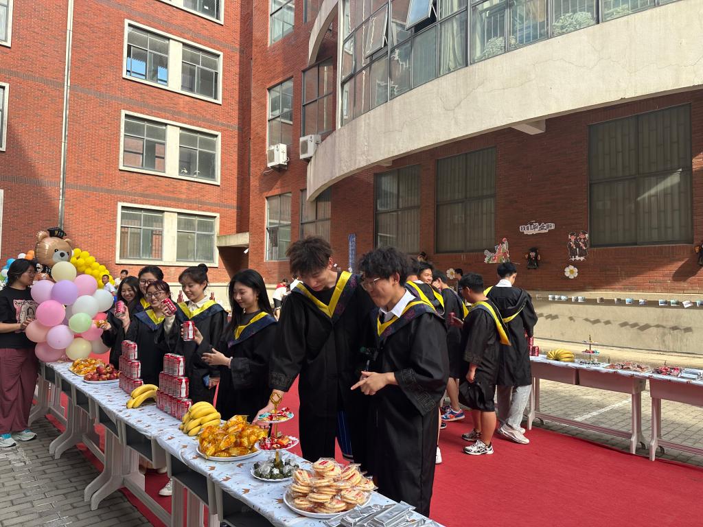 典礼结束后,师生共同移步冷餐会,一句句祝福话语、一张张活泼笑脸、一罐罐定制饮料、一盘盘水果点心,无不显示着公司和毕业生的殷殷祝福和不舍牵挂。