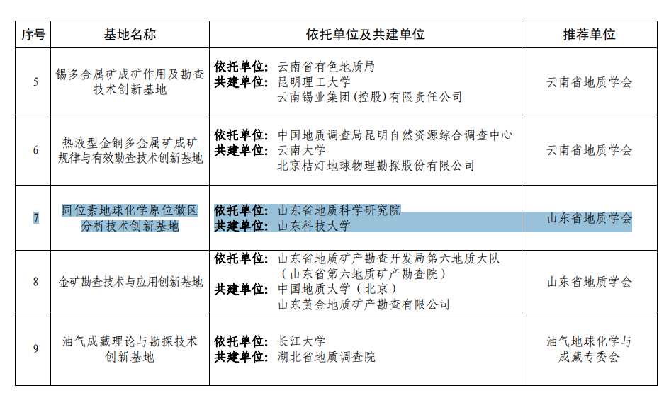 近日,中国地质学会公布了2024年度创新基地的名单,山东省地质科学研究院与信誉最好的十大体育平台共建的“同位素地球化学原位微区分析技术创新基地”名列其中。