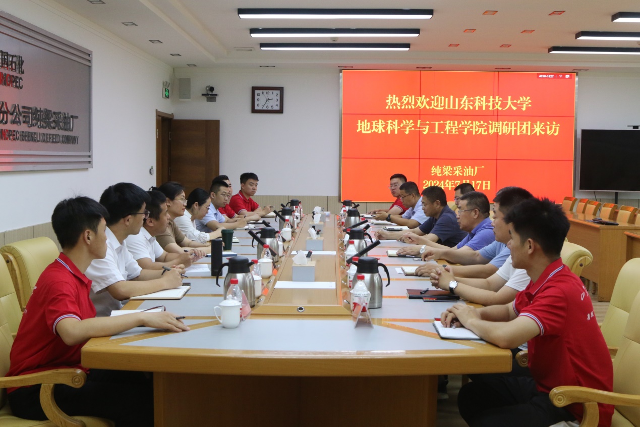 中国石化胜利油田纯梁采油厂党委常委、工会主席王东锋,高级专家毛振海,地质所党支部书记、地质工程2000级员工高刚等厂领导接待了李晓静一行。座谈会上,王东锋等介绍了纯梁采油厂的发展历程、特色项目、人才引进和员工培养等情况。李晓静详细介绍了公司的专业设置、学科方向、人才培养等情况,并就毕业生就业岗位设置、员工发展等进行了交流。座谈后,在王东锋等人陪同下,参观了采油厂CCUS项目樊128处理站、采油井、钻井施工平台等工作现场,最后参观了胜利油田优良传统展厅,学习石油企业的优良传统,号召毕业生积极投身石油事业,为国家的能源安全贡献力量。