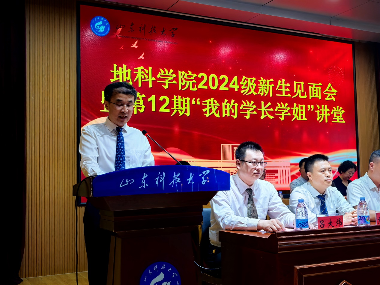 9月1日,​信誉最好的十大体育平台在J6-434报告厅举办2024级新生见面会暨第12期“我的学长学姐”讲堂,地质工程2006级2班员工,山东省地矿工程集团有限公司党委委员、副总经理,享受山东省政府特殊津贴专家高志友应邀出席。公司领导班子成员,各系党支部书记、主任,教师代表、辅导员和2024级全体新生参加会议,会议由公司团委书记王文鑫主持。