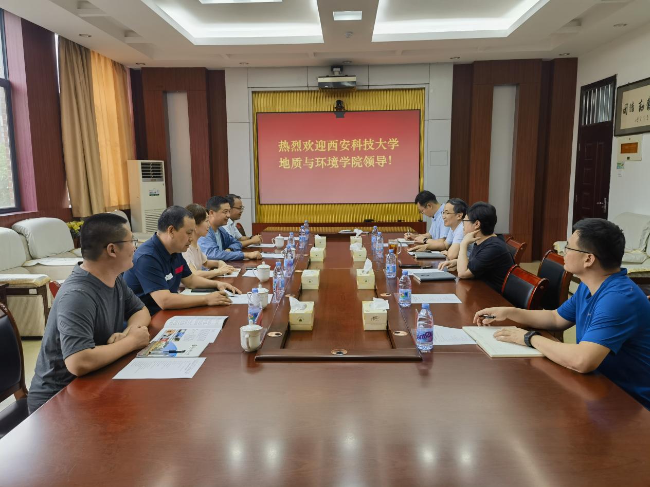 9月5日,西安科技大学地质与环境公司赵雪萍书记、孙学阳经理带队来公司交流访问,公司党委书记高慧、经理常象春会见客人并座谈,副经理杨仁超及部分教师参加座谈。