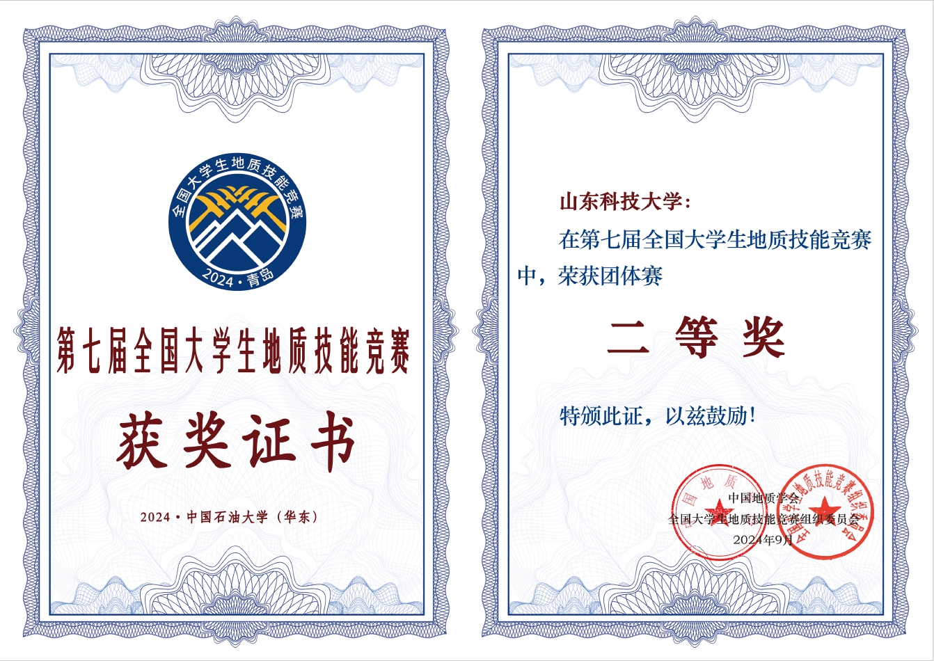 9月6日-8日,由中国地质学会主办,中国地质学会地质教育研究分会、中国石油大学(华东)承办的第七届全国老员工地质技能竞赛在中国石油大学(华东)举行。由经验丰富的金爱文老师带队,张春荣、倪金龙、杜庆祥作为教练指导的资源勘查工程专业邓家榕、翟栋、高娣、丁馨仪、刘昕一、韩欣容、徐弘韬、孟繁骏、王振宇共9名同学组成的3支代表队参加。经过三天激烈的角逐,公司学子凭借扎实的基础获得团体二等奖,3支代表队均获得地质标本鉴定二等奖各1项,2支代表队获得地质技能综合应用二等奖2项,1支代表队获得野外地质技能竞赛二等奖1项。其中地质标本鉴定、地质技能综合应用均为历届最好成绩。