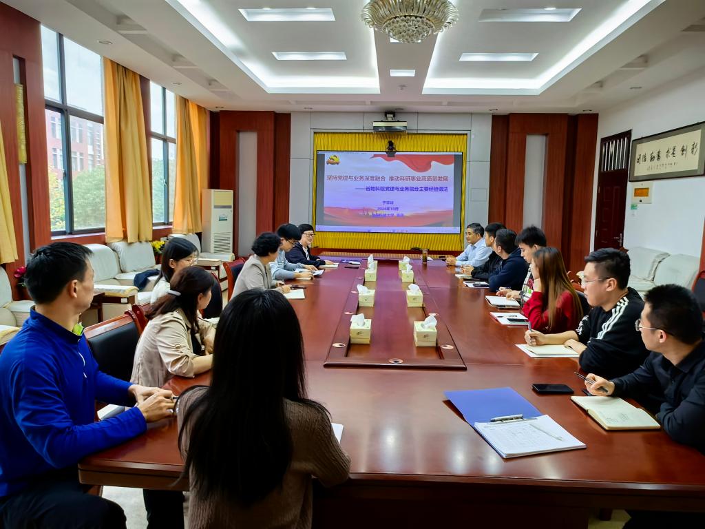 于学峰以《坚持党建与业务深度融合 推动科研事业高质量发展——省地科公司党建与业务融合主要经验做法》为题,结合省地科院在党建引领下所取得的一系列突出成绩,介绍了山东省地质科学研究院“四保障一基础”党建与业务融合的经验做法。“四保障一基础”做法一是压实机关党建责任,为党建与业务融合提供政治保障;二是实施“双带头人”制,为党建与业务融合提供组织保障;三是强化党建制度建设,为党建与业务融合提供制度保障;四是创建特色党建品牌,为党建与业务融合提供思想保障;五是组织“党建+”专业特色活动,为党建与业务融合奠定实践基础。省地科公司党委坚持党建引领,创新推动党建与业务融合发展,在破解“两张皮”方面进行了一些有益探索和实践,取得了一定成效,2019年被省直机关工委确定为“省直机关基层党建示范观摩点”,“党建引领 金石为开”党建文化品牌被评为“全省机关党建优秀创新案例一等奖”,先后荣获“全国先进基层党组织”“全国文明单位”“全国国土资源管理系统先进集体”“全国模范地勘单位”“全国地质勘查行业先进集体”等多项荣誉称号。报告结束后,于学峰同与会人员就“党建+”及支部品牌建设等工作进行了进一步深入交流,为大家进一步厘清了党建品牌建设工作思路。