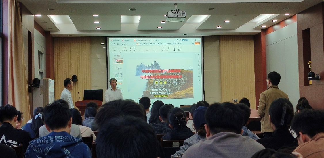 在报告中,何治亮教授提出海相油气勘探向“更老、更深、更复杂”的新领域推进,从“成盆-成烃-成储-成藏”四个方面深入浅出地讲解了海相深层油气的成藏理论;并结合最新的研究成果,分享了在碳酸盐岩储层精准建模方面的技术进展。他强调,随着全球能源需求的不断增加,深入理解和研究油气成藏机制,对于提高油气资源的勘探和开发效率具有重要意义。特别引人注目的是,何教授在报告的最后部分,展示了一体化油气藏地质建模软件iDRS,并分享了在该领域的前沿技术。他鼓励在场的同学们要积极创新,努力解决“卡脖子”风险下的软件和技术等问题,推动我国油气资源的可持续发展。随后,何教授同师生进行了现场交流。何教授报告内容丰富,理论与实践相结合,使在座师生对油气成藏理论及相关技术有了更深入的理解。杨仁超在总结中,对何治亮教授的精彩分享表示感谢,并鼓励同学们积极参与学术活动,拓宽视野,提升自身专业素养,为国家科技创新贡献力量。