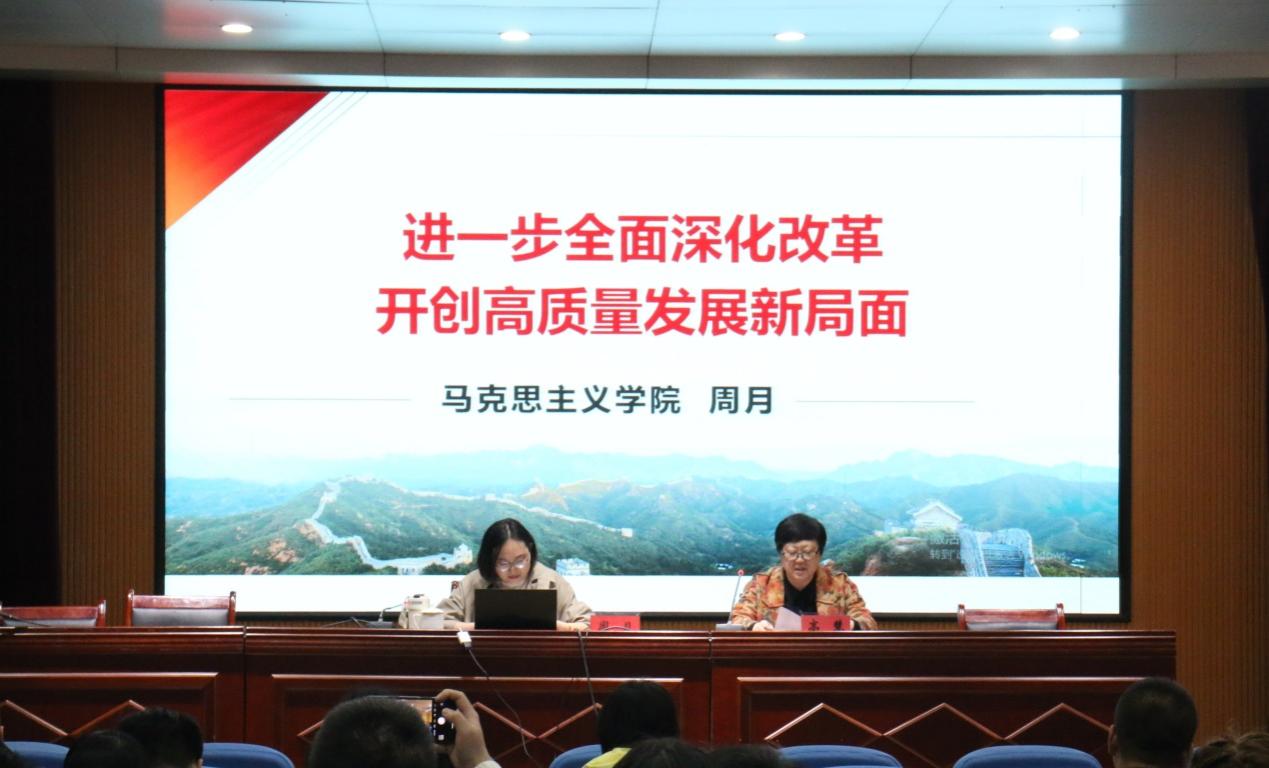 10月29日,信誉最好的十大体育平台邀请公司“山海泉”理论宣讲团成员、马克思主义公司副教授周月作党的二十届三中全会精神宣讲报告,报告由公司党委书记高慧主持,公司全体党员教师参加。