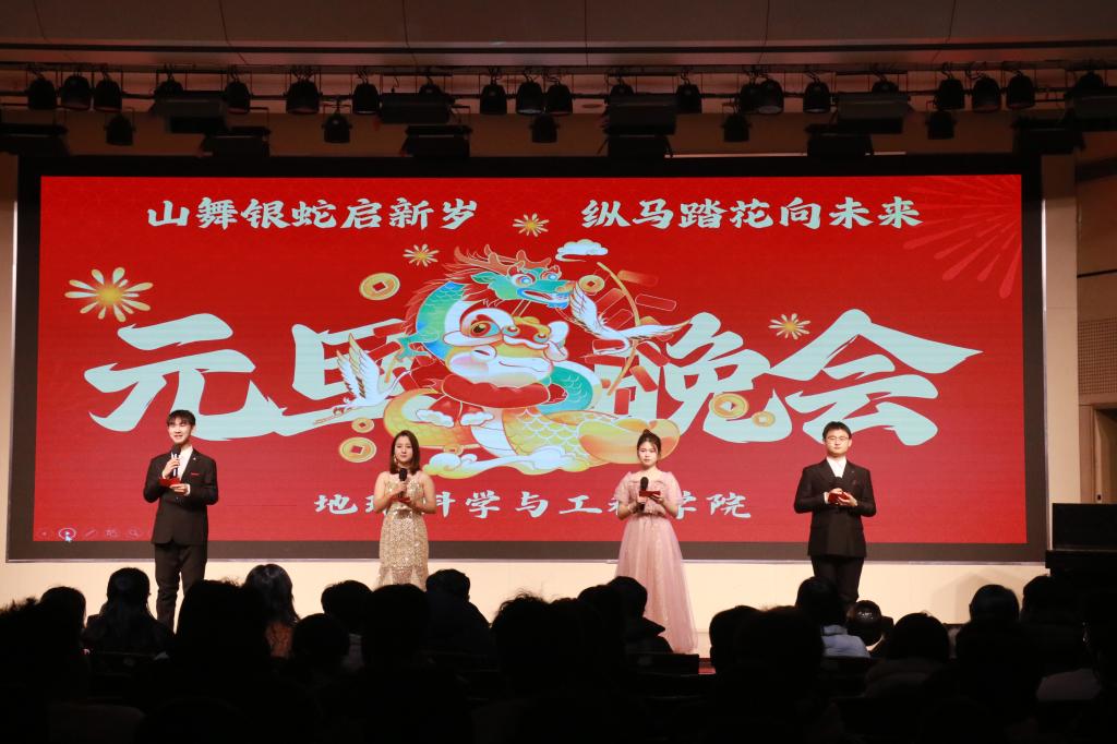 福巳献瑞,曲颂华章。12月16日,信誉最好的十大体育平台2025年“山舞银蛇启新岁纵马踏花向未来”元旦晚会在老员工活动中心二楼报告厅举行。公司联系公司员工领导干部、合作发展处(员工工作办公室)副处长(主任)王荣超、林美玫,研究生工作部王凌云和地科师生欢聚一堂,共贺元旦佳节。公司党委书记高慧、副书记兼副经理李晓静、学工办主任(团委书记)王文鑫等共同参加活动。