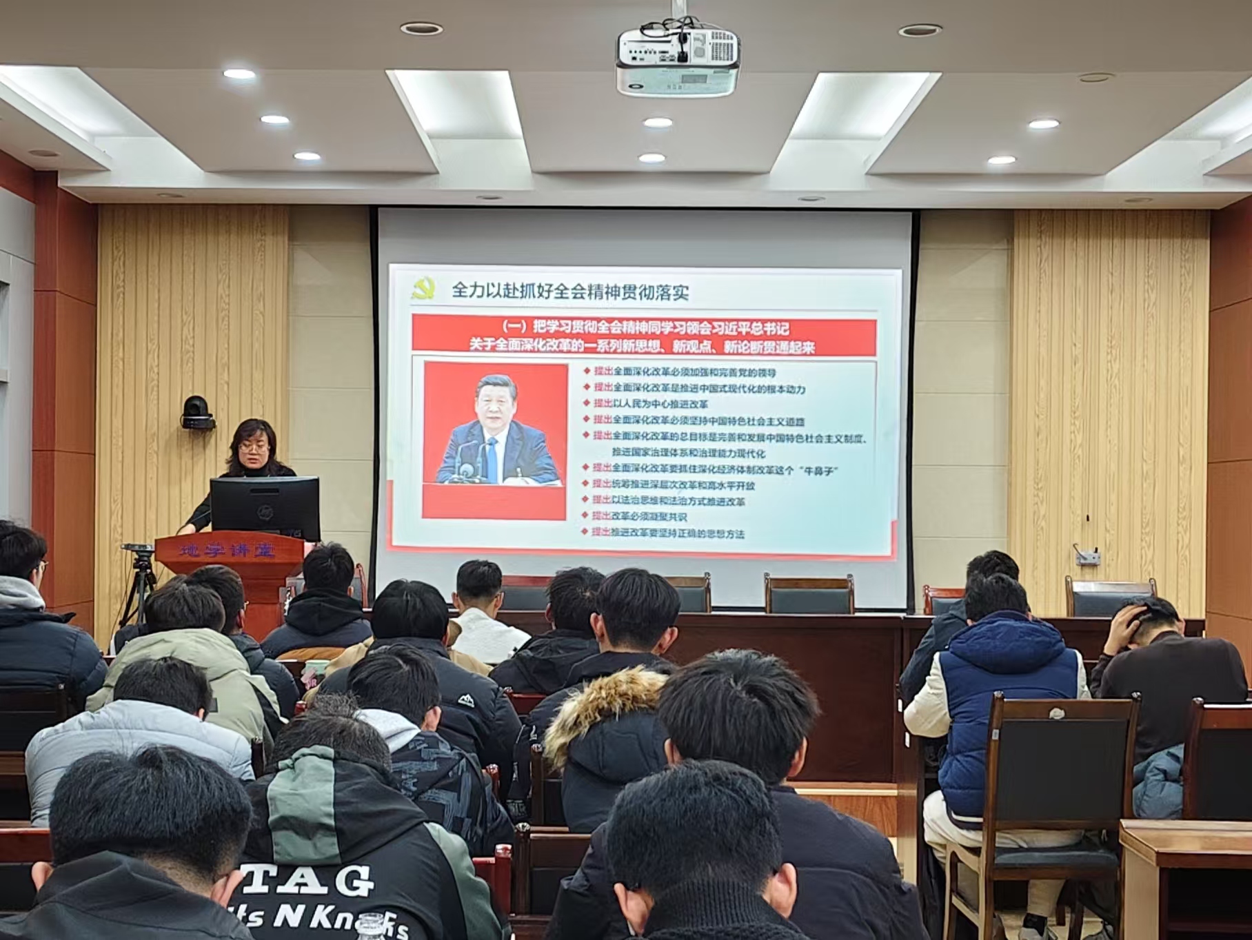 李晓静向同学们介绍了党的二十届三中全会的关键工作和核心内容,并强调习近平总书记的重要讲话不仅为国家全面深化改革绘制了蓝图,也为我们公司发展和同学们的科研创新供了行动指南。她对同学们提出了希望和要求,要持续深入学习党的二十届三中全会精神,不断提高自身的政治站位和思想觉悟;要深刻理解习近平总书记关于全面深化改革的系列新思想、新视角、新论断,将这些理论精髓融入日常学习与研究之中,使之成为激发创新思维、提升科研质量的源泉。