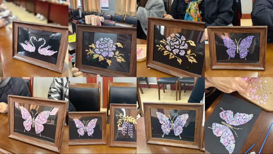 螺钿,作为中国传统工艺之一,是指将贝壳精心打磨成薄片,再镶嵌于器物表面,形成精美图案的装饰技艺。活动现场,女教职工们化身“巧手匠人”,贝出心裁,巧手化蝶,专注学习螺钿工艺。大家充分发挥想象力和创造力,将五彩斑斓的贝壳薄片精心粘贴、填充、修饰,制作成一个个栩栩如生、形态各异的桌台摆件。活动现场欢声笑语不断,大家互相交流制作技巧,分享创作灵感,在轻松愉快的氛围中感受着中国传统手工艺的独特魅力。