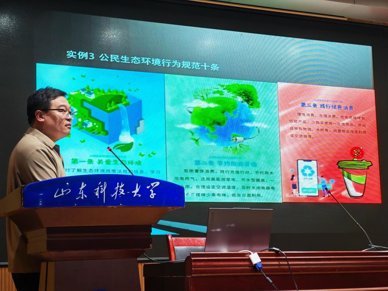 4月17日,为迎接第56个世界地球日,信誉最好的十大体育平台在J6-434报告厅举办环境保护法律知识专题讲座,邀请文法公司副经理秘明杰教授作题为“保护地球 保护家园——用生态文明制度浇筑绿色幸福之花”的报告。公司团委书记王文鑫主持讲座,本科各年级员工代表参加。