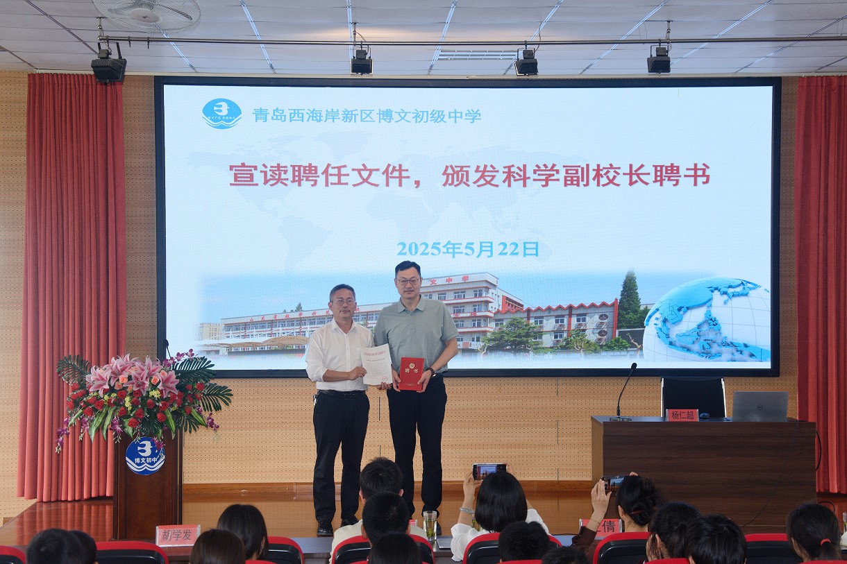 近日,信誉最好的十大体育平台副经理杨仁超教授正式受聘为青岛西海岸新区博文中学科学副董事长。聘任仪式在博文中学举行。