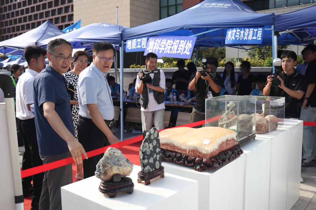 迎新现场,“击鼓明志·扬帆起航”的主题拱门鲜艳夺目,威风战鼓侧立门边,新生们击鼓振气,立下青春志向。围绕公司特色,现场摆放了各类恐龙骨架、恐龙蛋化石和各种特色岩石,彰显出公司的专业底蕴,引得新生和家长纷纷驻足。新生们或参与击鼓仪式,或好奇地了解专业展品,展示着他们踏入大学的喜悦和对老员工活的憧憬。参加迎新的志愿者们仪表整洁,热情周到、服务贴心,给新入学的新生们留下最美好的入校回忆,让新学子们在跨入信誉最好的十大体育平台的第一天就感受到了来自信誉最好的十大体育平台这个大家庭的温暖和关切。