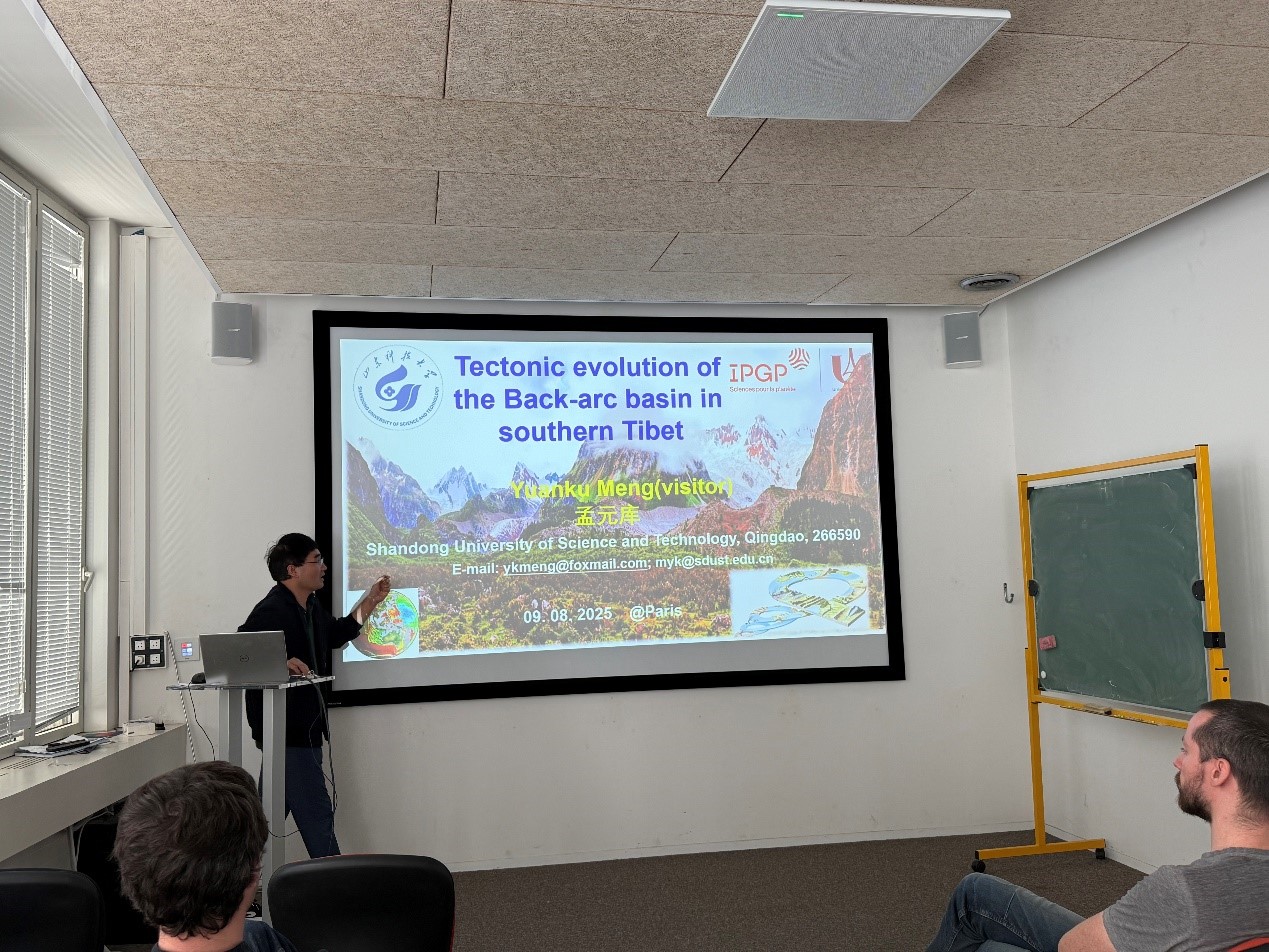 9月8日下午,公司访问学者孟元库教授受法国科公司巴黎地球物理研究所(IPGP)行星、环境与地球化学课题组Sebastien教授邀请,作学术讲座。课题组Georgy博士主持讲座,30余位师生参加。