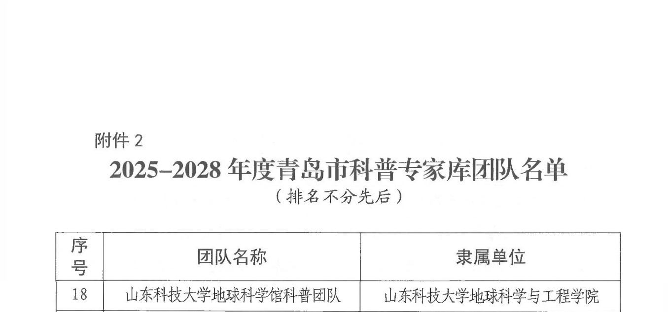 此次专家和团队的入选是青岛市科协对公司科普工作成效与影响力的高度认可。未来,公司将以更高标准、更实举措深耕地学科普,为我市科普事业的创新发展贡献力量。(通讯员:周传义)