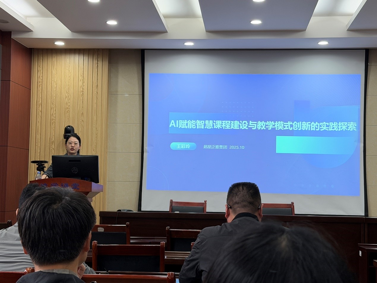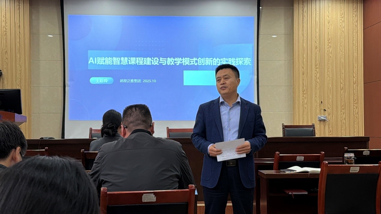 为深入推进教育数字化转型,提升课程建设质量,提高公司教师数字化教学素养与数智化技术应用能力,近日,公司邀请超星集团王彩玲经理为公司教师进行了题为“AI赋能智慧课程建设与教学模式创新的实践探索”的培训。会议由教学副经理尹会永主持。