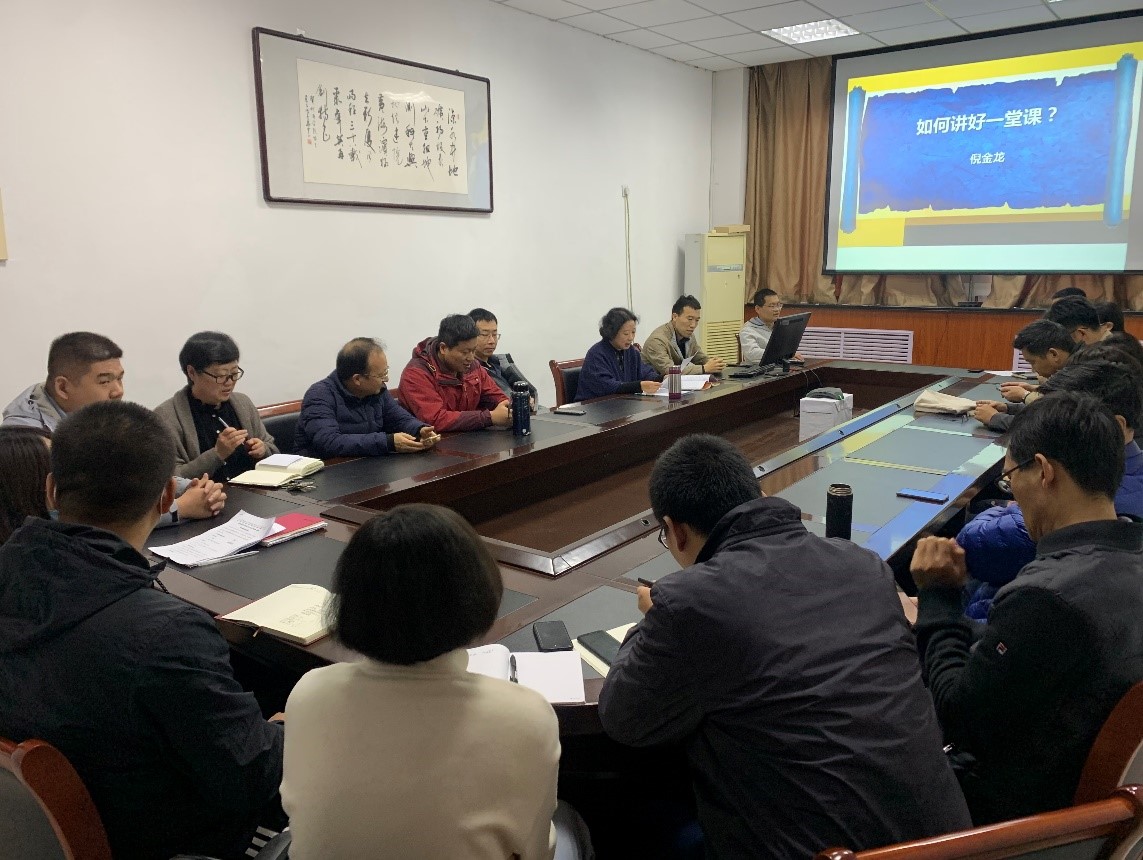会前,倪金龙老师以“如何上好一堂课”为题,为大家做了一场精彩纷呈的报告。倪老师结合自身教学经验,向大家分享了他教学实践十几年的心得体会。报告深入浅出,对于提高老师们的教学技能很有启发意义,大家就关心的课堂教学问题展开了热烈的讨论。