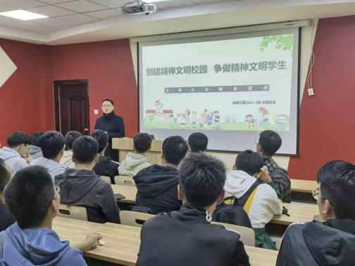 为全面深入落实公司“争做文明师生 创建文明校园”倡议书,11月5日晚七点,地质工程2021-2班在老员工活动中心206召开“争做文明师生 创建文明校园”主题班会,积极推动文明创建活动向深入发展。班主任李雷老师及班级全体同学参加了班会。