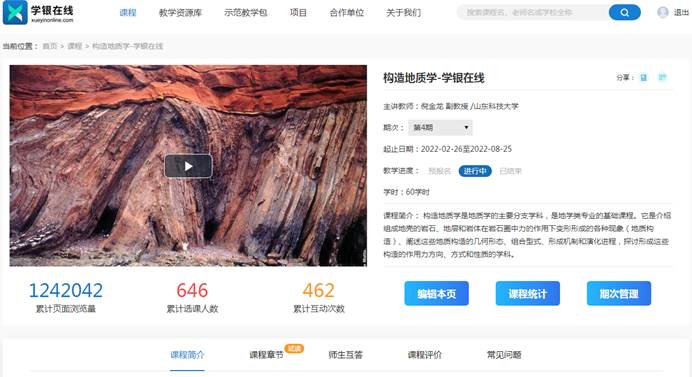 图2 学银在线课程门户(《构造地质学》-倪金龙、刘海燕)