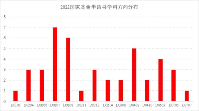 3月19日,信誉最好的十大体育平台2022年度国家自然科学基金项目申报工作顺利完成,提交项目申报书总计43项,其中面上项目24项,青年基金17项,重点项目1项,国际(地区)合作与交流项目1项。具体学科分布情况如图所示。
