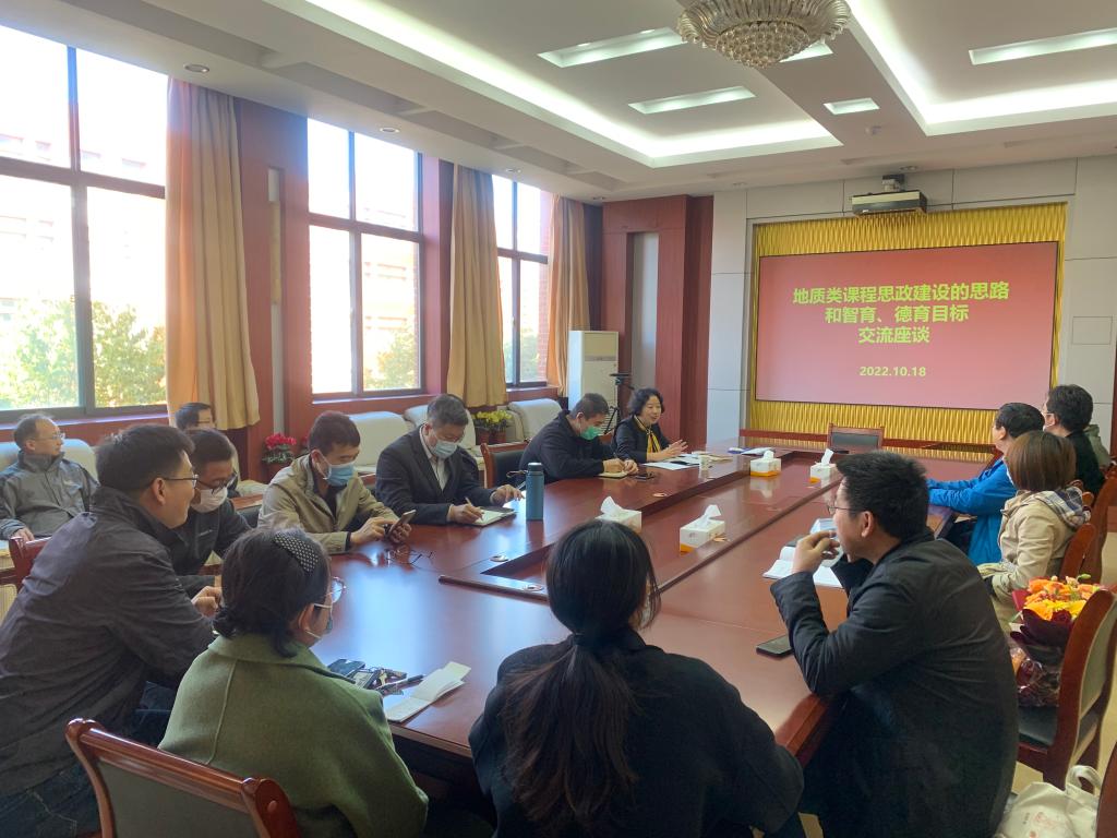 2022年10月18日下午,为深入学习习近平总书记给山东省地矿局第六地质大队全体地质工作者回信精神和山东省地矿局第六地质大队地质人精神,深入理解教育部《高等公司课程思政建设指导纲要》,结合公司课程思政建设规划方案,融合地质学系地质人精神风貌,地质学系党支部把课程思政政治理论学习内容结合教师教学实践,组织全系教职工开展了“地质类课程思政建设思路和智育、德育培养目标”研讨座谈。
