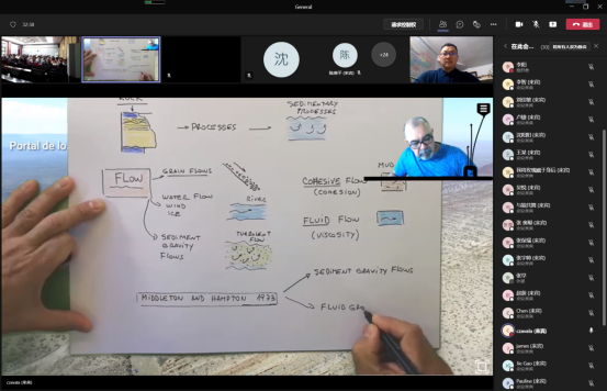 课程上,Carlos教授不仅通过边讲边手绘的方式进行授课,还通过虚拟仿真平台、PPT及播放视频等方式,生动详细的解释了各种牵引流沉积构造的形成机制。Carlos教授科学严谨的科研精神深深地打动了员工。