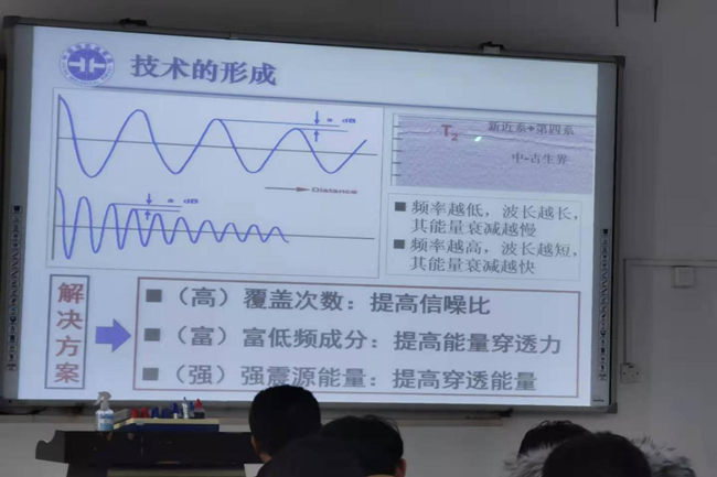 陈建文老师以“中国海域沉积盆地深部油气资源地震探测技术”为题,先后从问题与需求、地震地质条件、技术的形成和技术的应用等4个方面进行了详细讲解。由于南黄海盆地深层地震反射资料品质低、地震反射能量弱、地震反射轴不连续、信噪比低,造成对深层的地层划分、构造解析难度极大;针对上述主要问题,陈建文老师带领团队,持续开展了十余年的技术攻关,形成了以“高覆盖次数,提高信噪比;利用富低频成分,提高能量穿透力;强震源能量,提高穿透能量”为核心的“高、富、强”关键技术,有效解决了上述技术难题,理清了南黄海盆地深层的地层构架,识别了多个油气圈闭,后经科学探索钻井证实,该地区深层具有重大的油气资源潜力。
