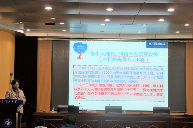 报告中,吴时国对我国深海领域物理探测的优势、计划和目标等方面进行了介绍,并结合实际事例强调了深海领域探测的重要性。随后,吴时国教授向我们展示了我国取得的海洋科考成果, 并指出了今后的发展方向及海洋科考的战略意义。在讲座过程中,吴主任语言生动幽默,充分体现出他的知识渊博和思维敏捷。