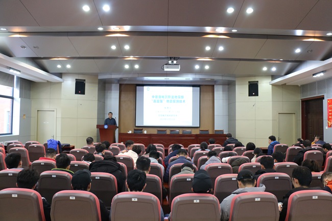 陈建文教授首先就其所在的青岛海洋科学与技术国家试点实验室、油气地质创新团队和中国地质调查局海城油气资源调查工程进行了简要的介绍,并从海洋油气资源检查研究、我国海域深部探测技术、地震探测技术等方面入手,结合了自己的研究成果,详细讲解了中国海域沉积盆地深部“高富强”地震探测技术的形成、作用、应用前景以及该技术所应用的地质条件。陈教授重点强调,此项技术将是提升我国海域找油层次和拓展我国海域找油宽度的重要手段。报告会结束之后,陈建文教授对在场师生的提问进行了详细解答,令公司师生受益匪浅。