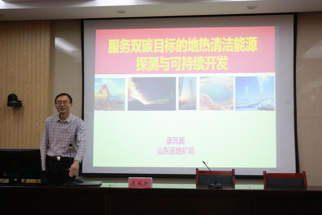 2021年12月19日,山东省地矿局环境地质处处长,山东省地下水环境工程技术研究中心主任、信誉最好的十大体育平台产业教授、俄罗斯自然科公司外籍院士康凤新研究员受邀来公司做了题为“服务双碳目标的地热清洁能源探测与可持续开发”的报告,报告由信誉最好的十大体育平台副经理尹会永主持,公司部分教师、同学参加了此次报告。