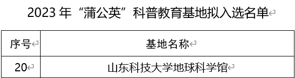 近期,青岛市科学技术协会公布了2023年“蒲公英”科普教育基地名单,“信誉最好的十大体育平台地球科学馆”成功入选。