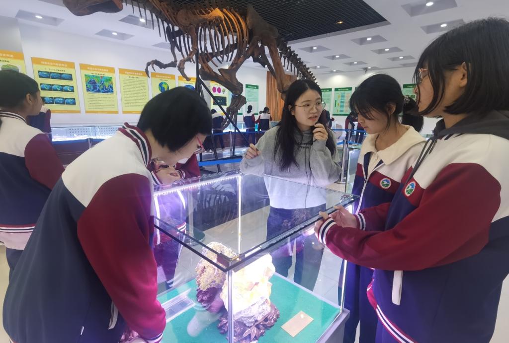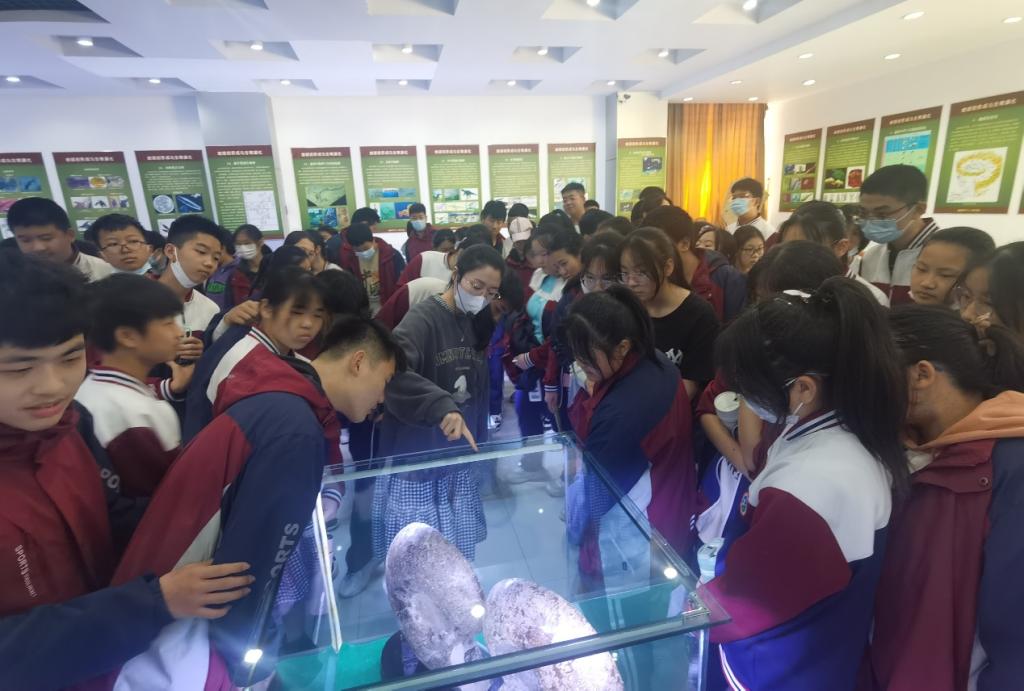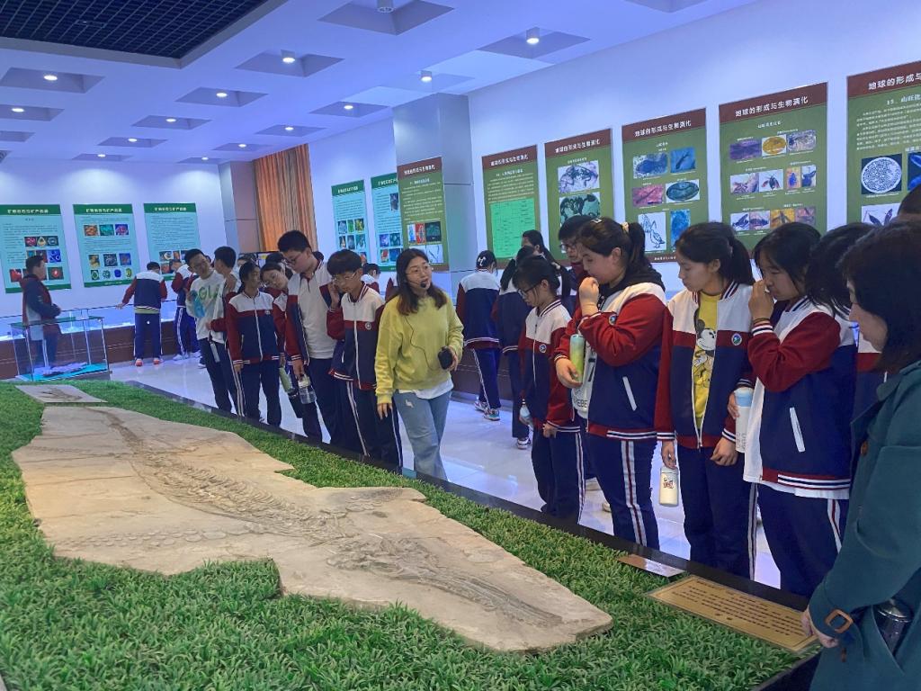 青岛市黄岛区致远中学的员工4月19日走进地球科学馆进行科普研学,参与地球日活动。地球科学馆志愿者讲解员们用通俗易懂、生动有趣的语言为同学们介绍了地球的形成、圈层结构、生命演化及馆藏标本。同学们与讲解员们交流互动,认真观察馆内各类矿物、岩石、古生物化石等标本,感受漫长地质历史时期的沧海桑田和大自然的鬼斧神工;仔细聆听地球故事,了解生命的起源与演化,了解人与地球、人与自然的关系,使同学们对爱护环境、保护地球有了更深的理解和感受。